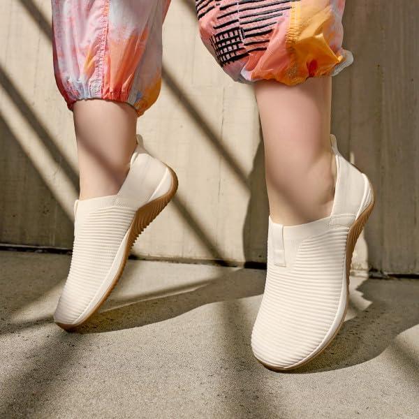 Get outdoors with ease in this lightweight, trail-ready slip-on sneaker with cushion, shock absorption, and sticky rubber tread soles. BEST FOR: Light outdoor hiking. PERFORMANCE TECH: RE-ZORB LITE for lightweight impact protection + shock absorption. MADE FOR WOMEN FIT: Designed for a woman’s unique foot shape, muscle movement, and build with a narrower heel, roomier toe, and softer foot cushioning. MATERIALS: Soft ribbed knit + Padded heel collar for extra cushioning. CLOSURE: Slip-on fit with stretch topline for extra flexibility + front and back pull tabs for easy on/off. INSOLE: Anatomical insole with extra arch + heel support. MIDSOLE: Lightweight EVA for soft cushioning with RE-ZORB LITE. OUTSOLE: Sticky rubber sole with tread grooves for extra traction outdoors + raised sidewalls for extra support. WEIGHT: 220 g/8 oz per shoe. HEEL-TO-TOE DROP: 8 mm.